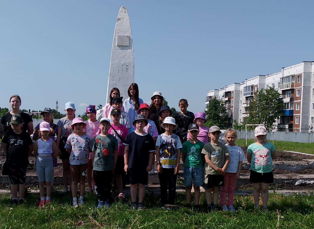 Ребята возложили к обелиску гвоздики и почтили всех погибших минутой молчания.