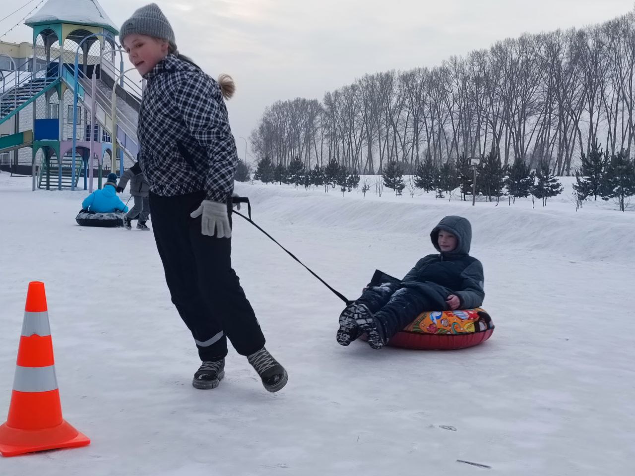 Зимние каникулы – идеальное время для семейного досуга на свежем воздухе. Работники библиотек на площади у городской горки 5 января организовали игровую программу «Зимние забавы».
