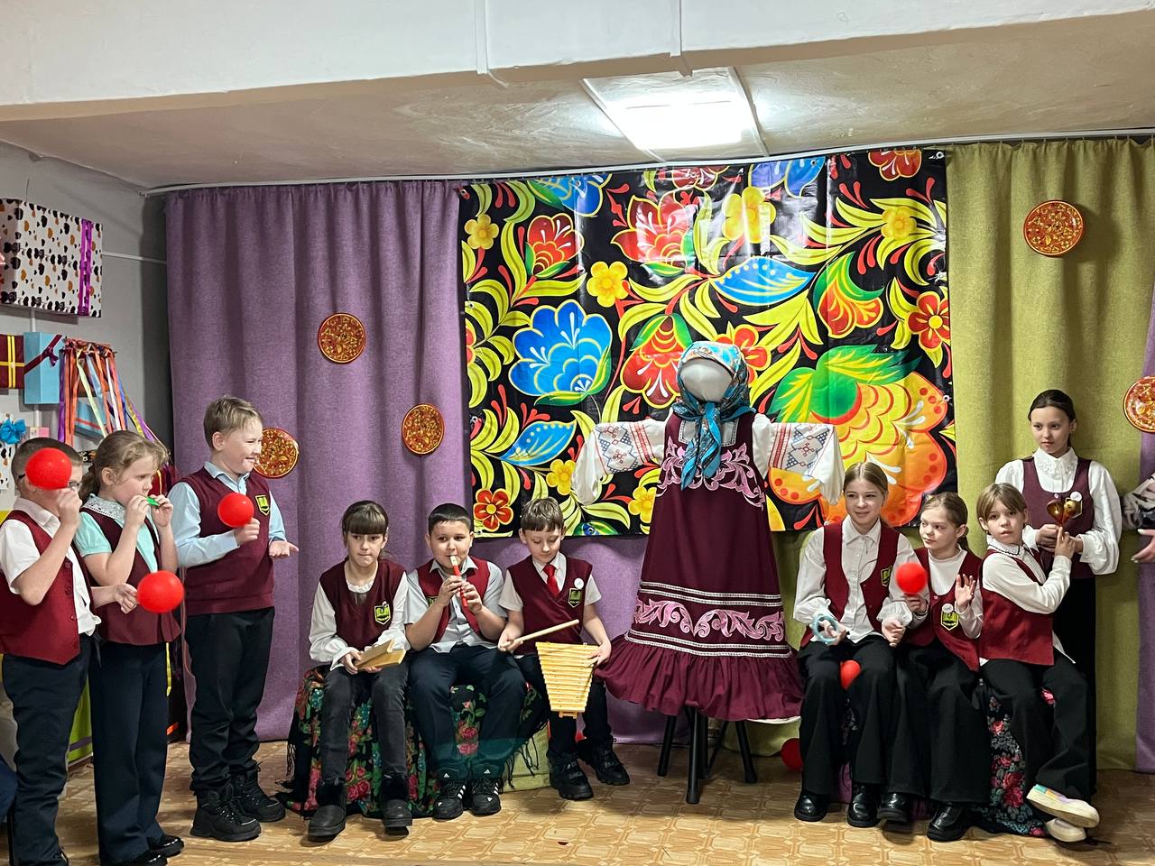 Ребята познакомились с традициями Масленицы: изучили особенности каждого из семи праздничных дней, выучили заклички и песни, с азартом поиграли в народные игры — «Бой мешками», «Перетягивание каната» и «Карусель». Дети также узнали о символике праздника: зачем сжигают чучело Масленицы и почему важно славить Солнце.