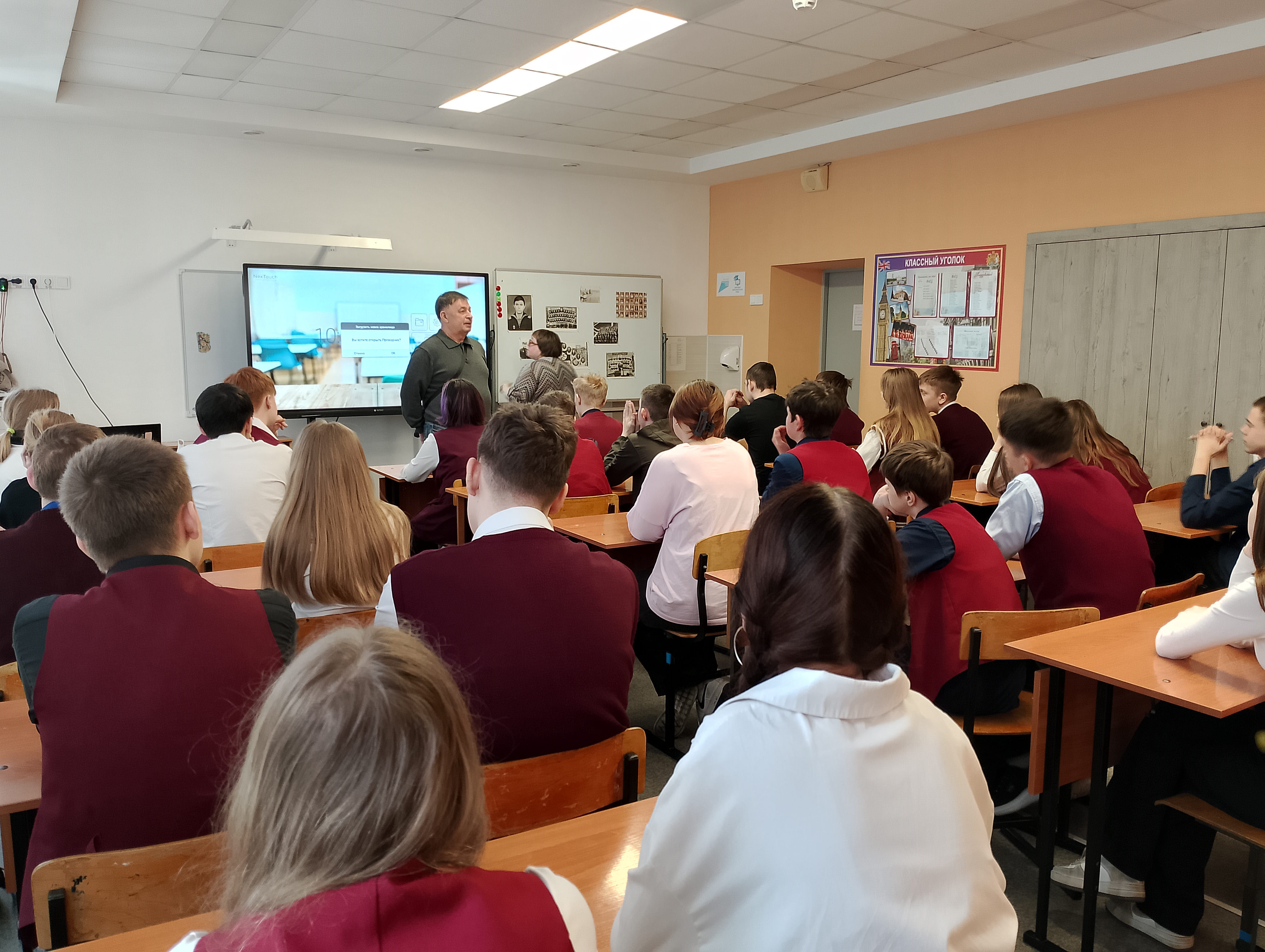 Владимир Михайлович поделился личным опытом, рассказал об особенностях работы на подводной лодке, морских походах и задачах по защите рубежей страны. Учащиеся задали вопросы о распорядке дня на подлодке, необходимых качествах для службы и действиях в экстремальных ситуациях. Капитан‑лейтенант подчеркнул, что профессия требует физической выносливости, дисциплины, глубоких знаний и командного духа.