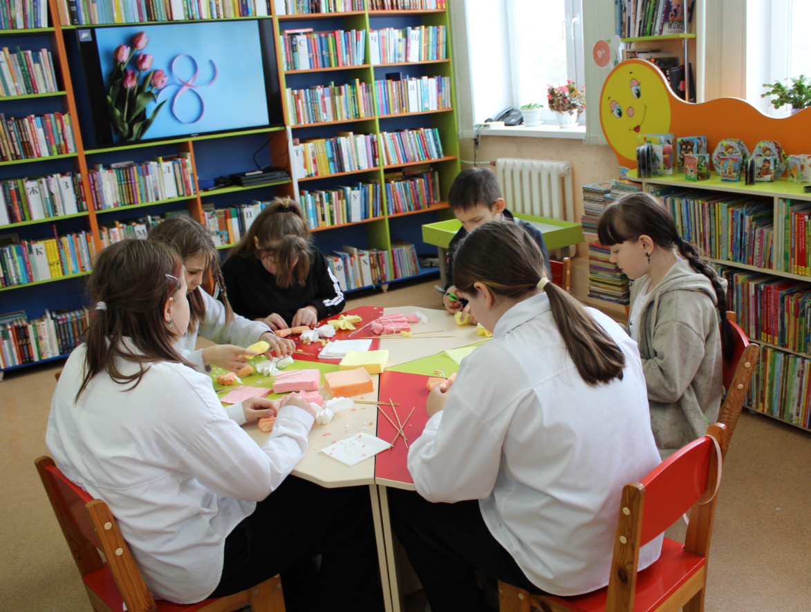 5 марта в модельной библиотеке работала творческая мастерская по изготовлению букетов из цветной бумаги «Весенний букет для мамы».