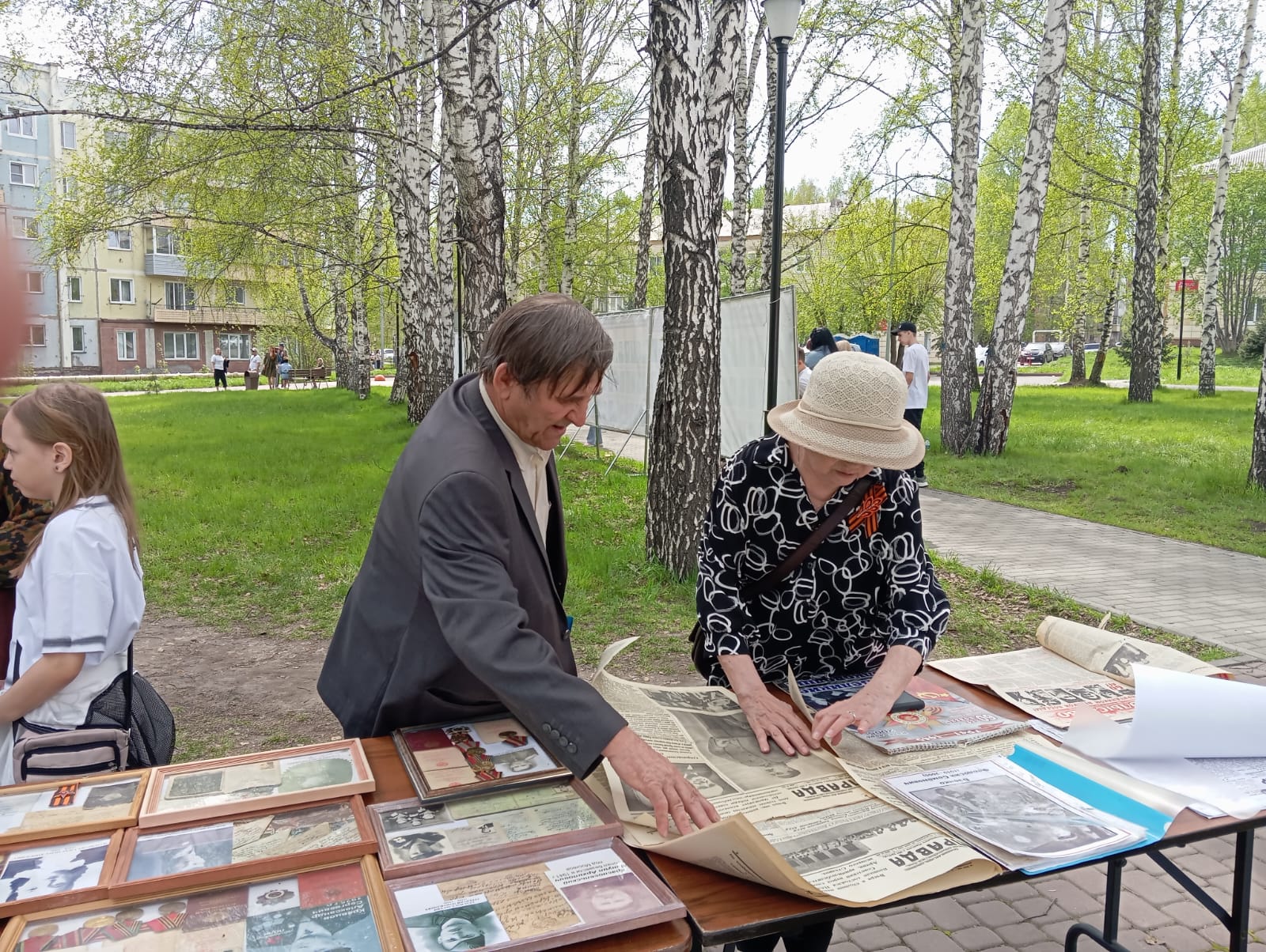Сердцем праздника стали проекты, посвящённые сохранению исторической памяти. Выставочная экспозиция «Память бережно храним» - имитация блиндажа с предметами военного времени. Все экспонаты можно было рассмотреть, потрогать и даже примерить. А у обновлённой «Стены памяти», которая уже 10 лет хранит имена и фотографии ветеранов Полысаево, собрались целые семьи. В этом году на стене разместили 377 портретов героев, и для многих найти среди них родные лица стало самым трогательным моментом дня.