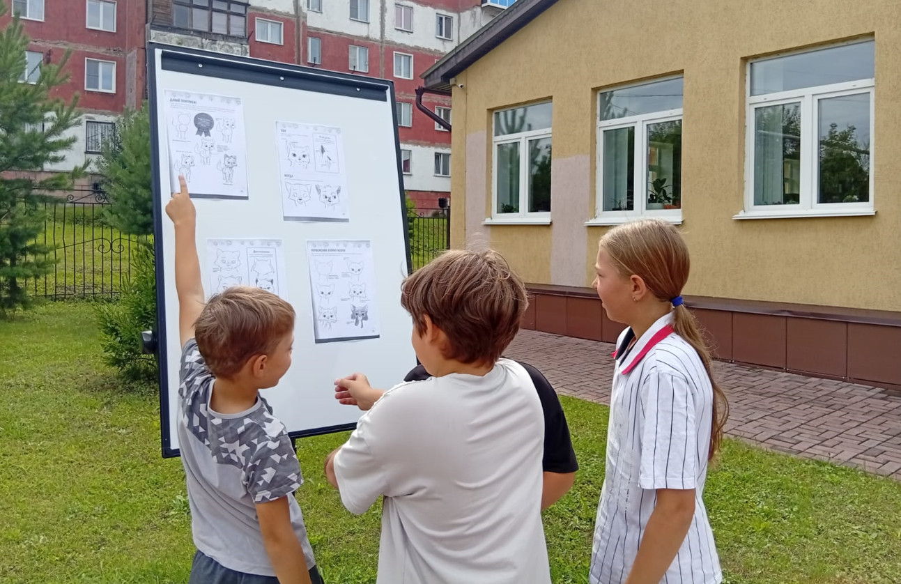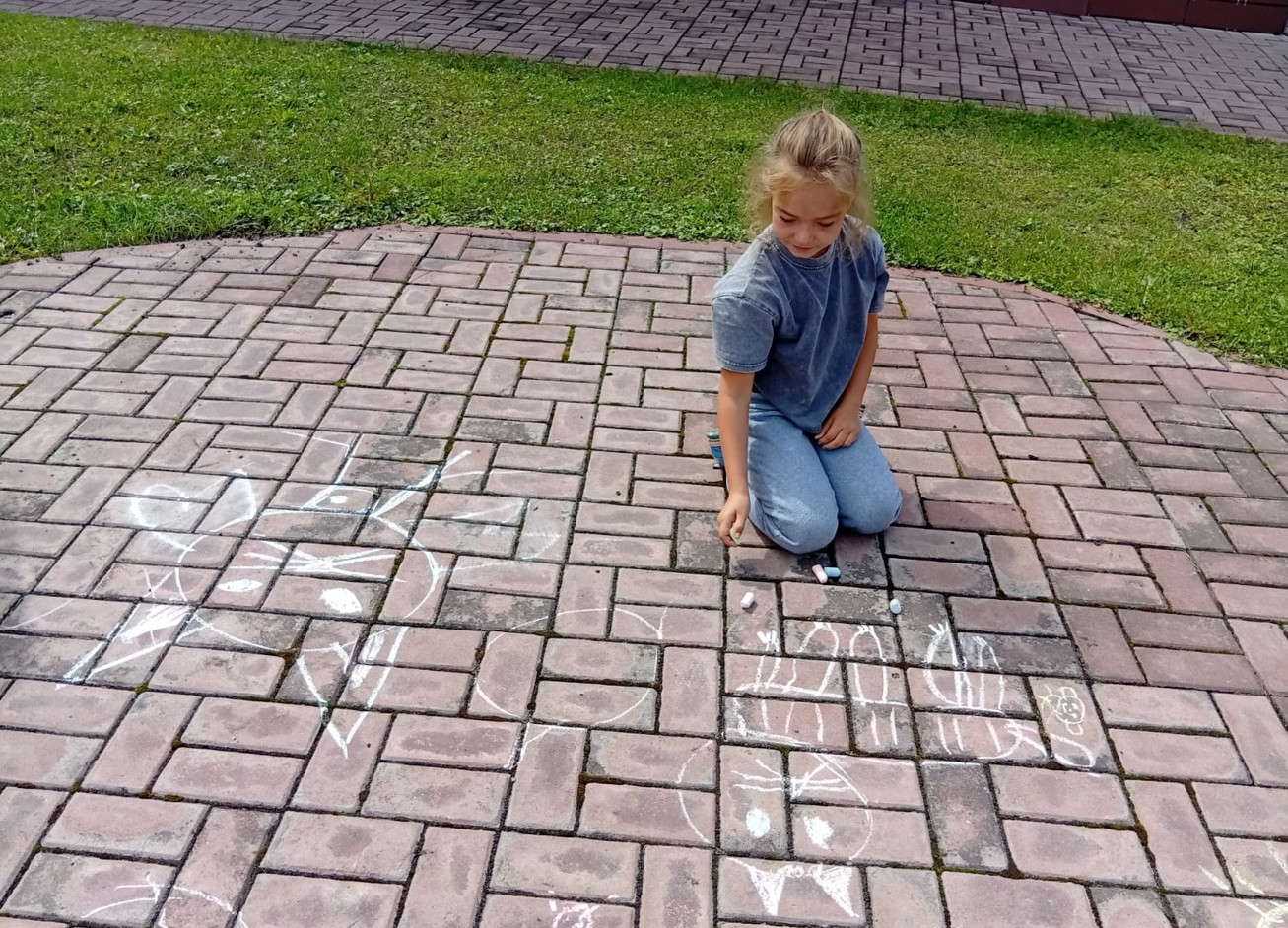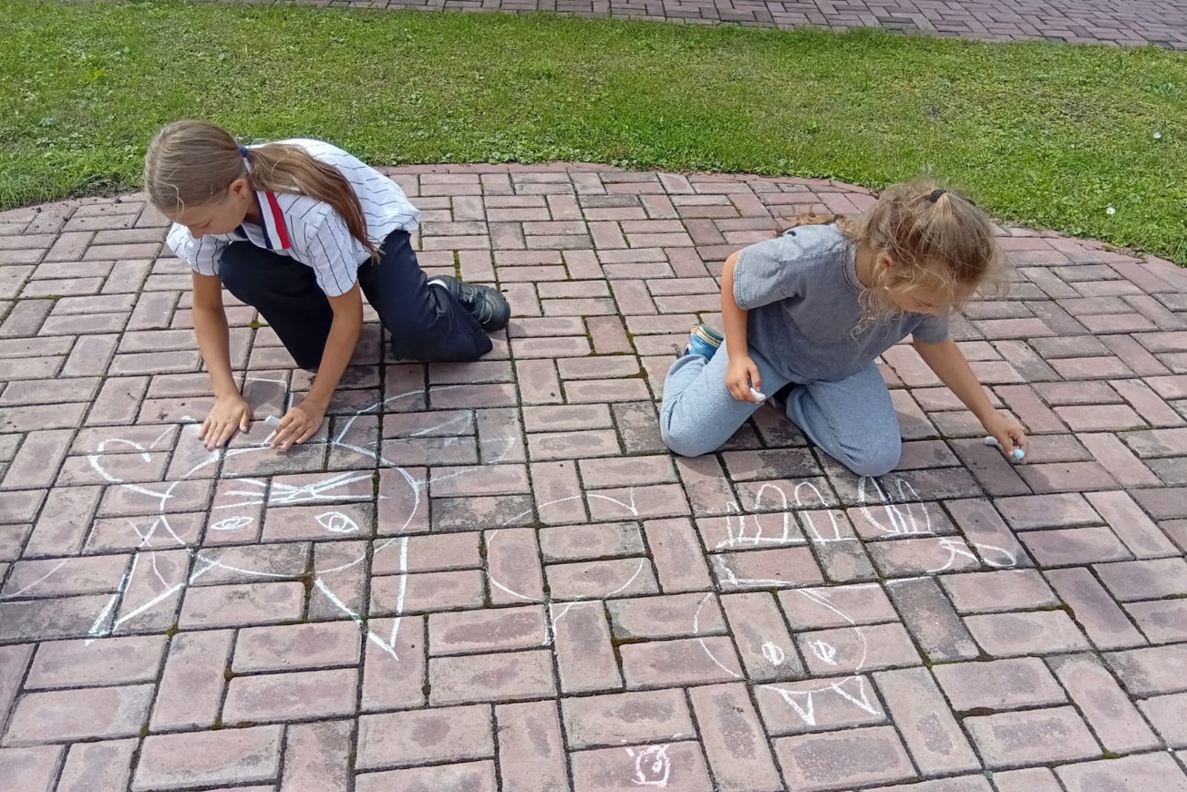 Участники мероприятия проявили себя настоящими художниками, создавая яркие и забавные рисунки на асфальте: «Кошки на окошке». Эти очаровательные творения стали настоящим украшением улицы!