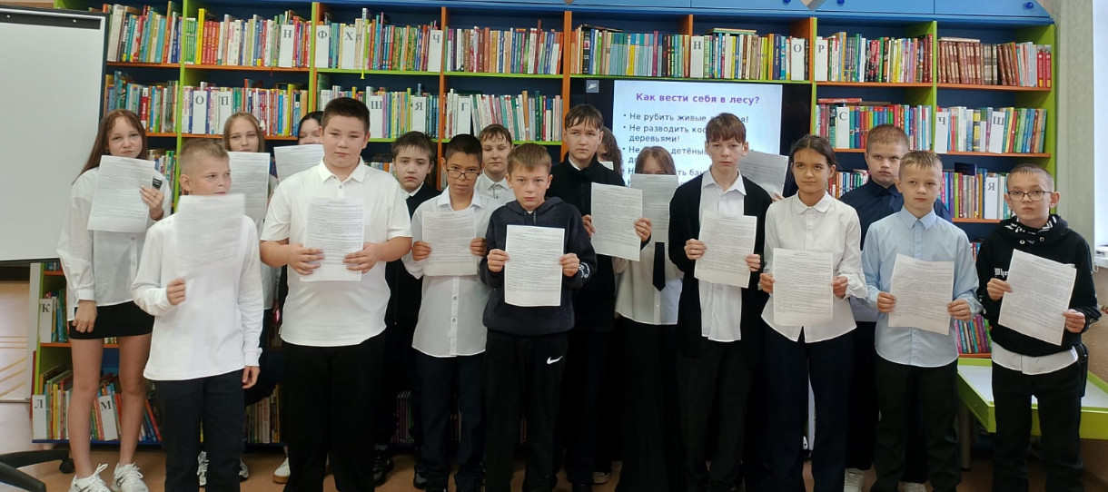 В модельной библиотеке для школьников прошёл познавательный урок о правилах поведения в лесу, где дети узнали о важности бережного отношения к природе. Ребятам объяснили, почему нельзя ломать ветки, разжигать костры в неположенных местах и мусорить, а также как правильно пользоваться оборудованием для похода.
