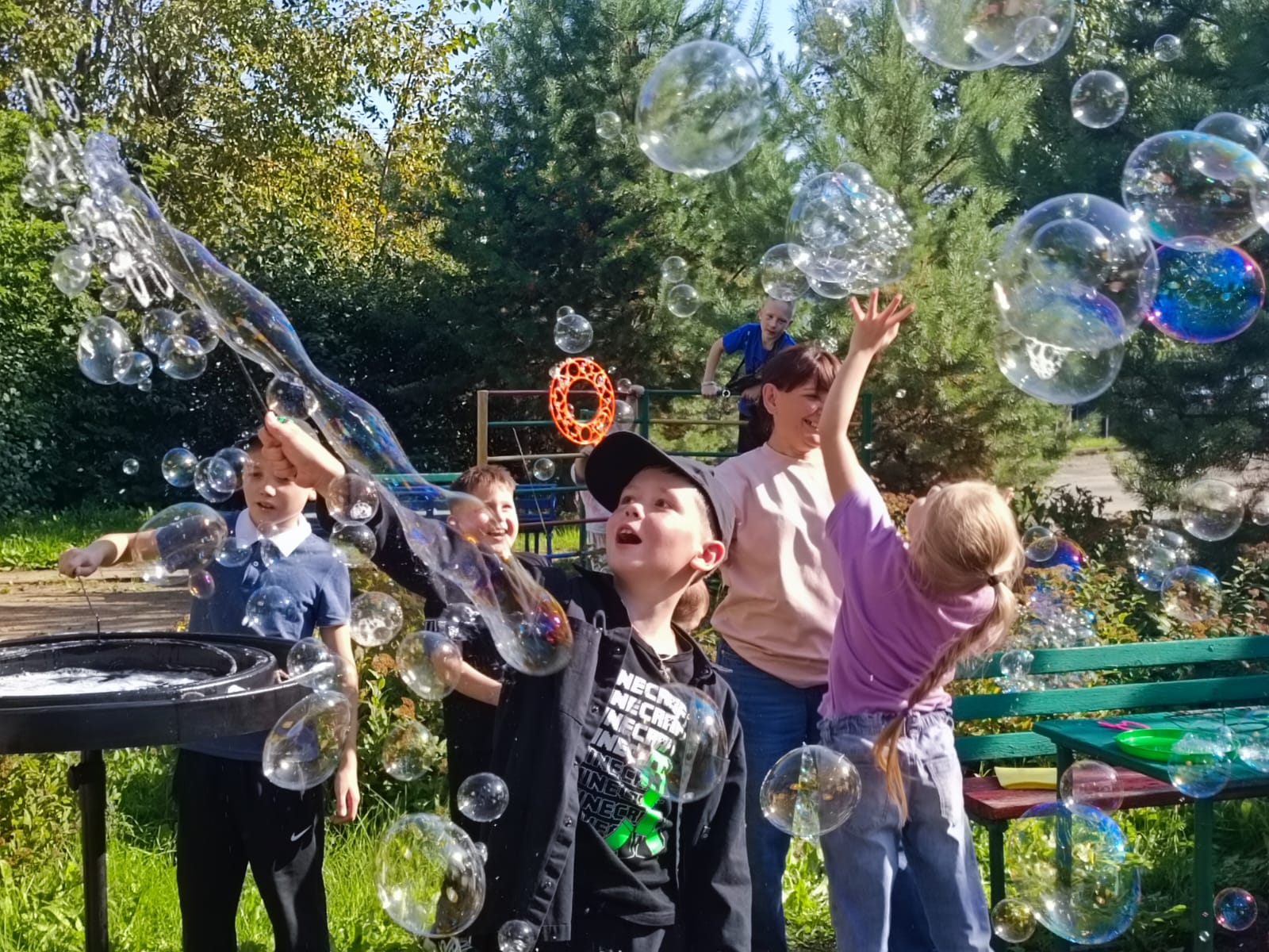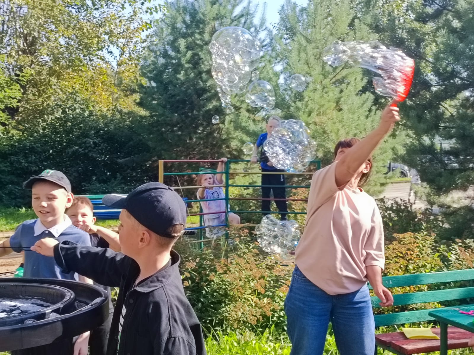 Мероприятие превратилось в красочный праздник, где дети не только научились самостоятельно делать раствор для гигантских и долгоживущих пузырей, но и узнали о научной стороне этого удивительного развлечения – физике поверхностного натяжения. Под чутким руководством наставников участники экспериментировали с различными формами и размерами инструментов, чтобы создать свое собственное мыльное чудо.