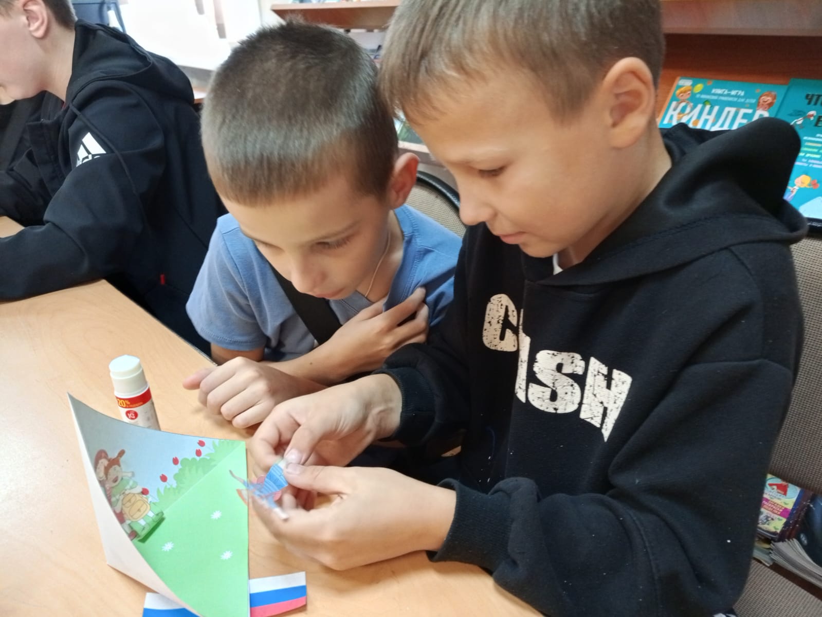 Ребята смогли проверить свои знания в викторине о государственных символах и приняли участие в увлекательном мастер-классе по изготовлению флага в технике аппликация.