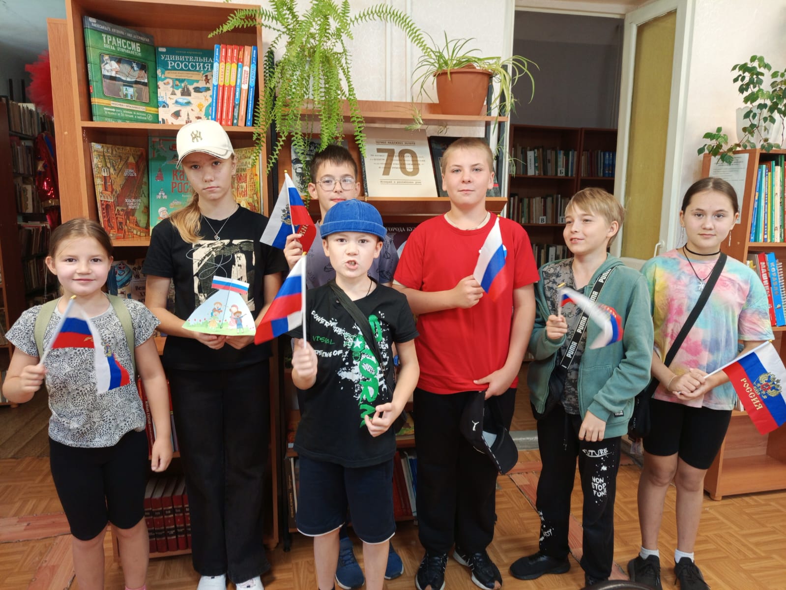 Библиотекарь рассказала ребятам об истории флага нашей страны, символике и значении цветов триколора, а также в каких случаях поднимается флаг Российской Федерации.