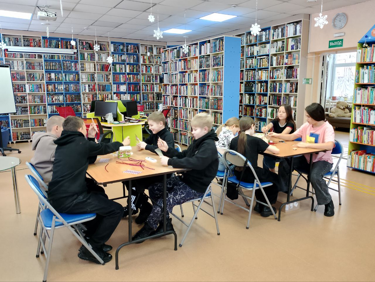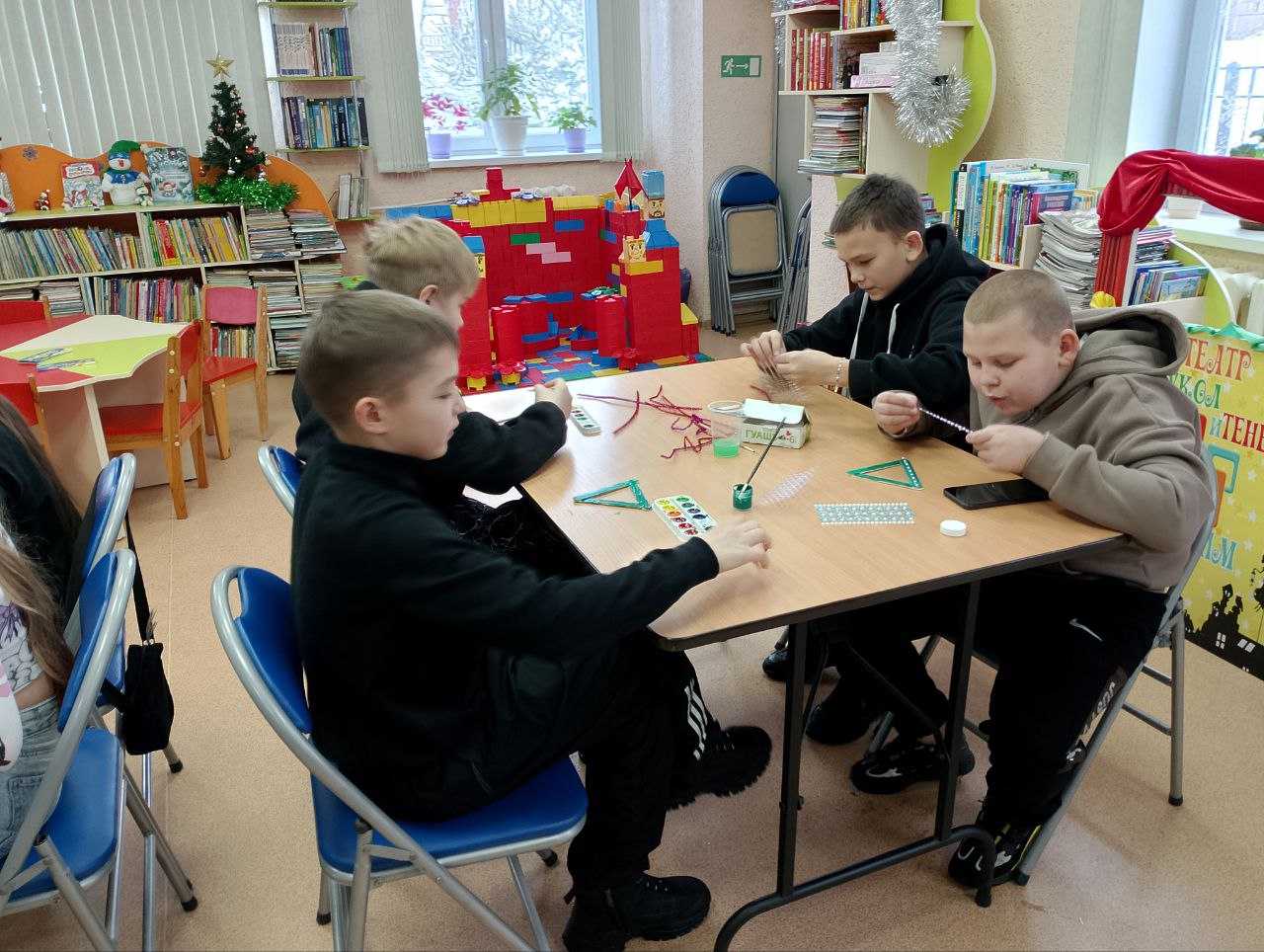 На творческом занятии в модельной библиотеке ребята смастерили ёлочки из палочек от мороженого, красок, бусин и блесток. Каждая поделка получилась уникальной — яркой, доброй и наполненной теплом. Теперь эти маленькие шедевры украсят дома или станут милыми подарками близким.