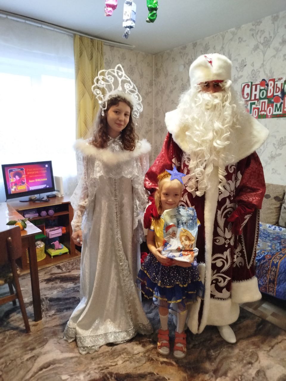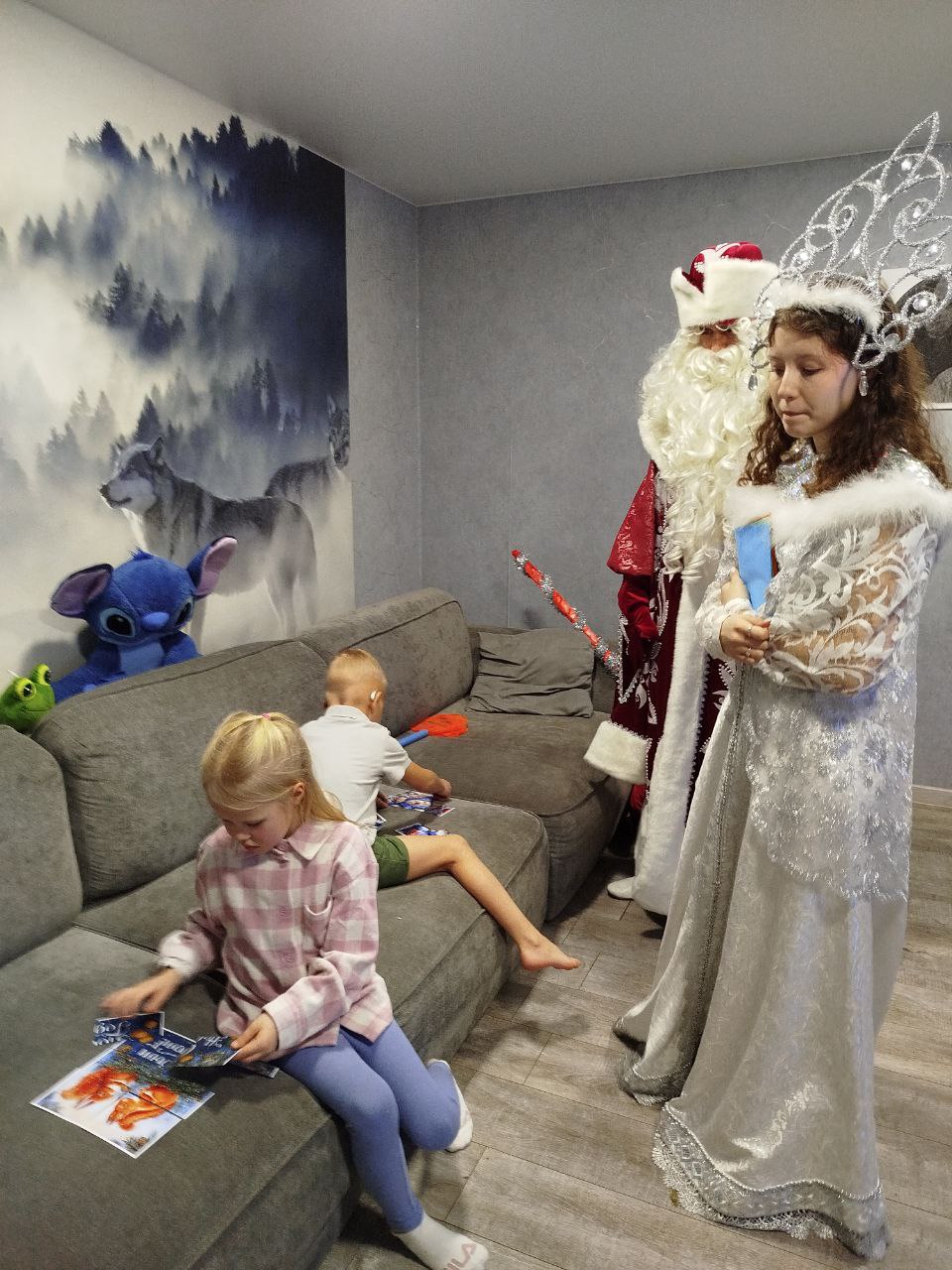 Библиотекарь с командой волонтеров отправляется в гости к детям на дом, чтобы устроить для каждого персональный новогодний праздник - мини-спектакль с участием главных героев – Деда Мороза и Снегурочки.