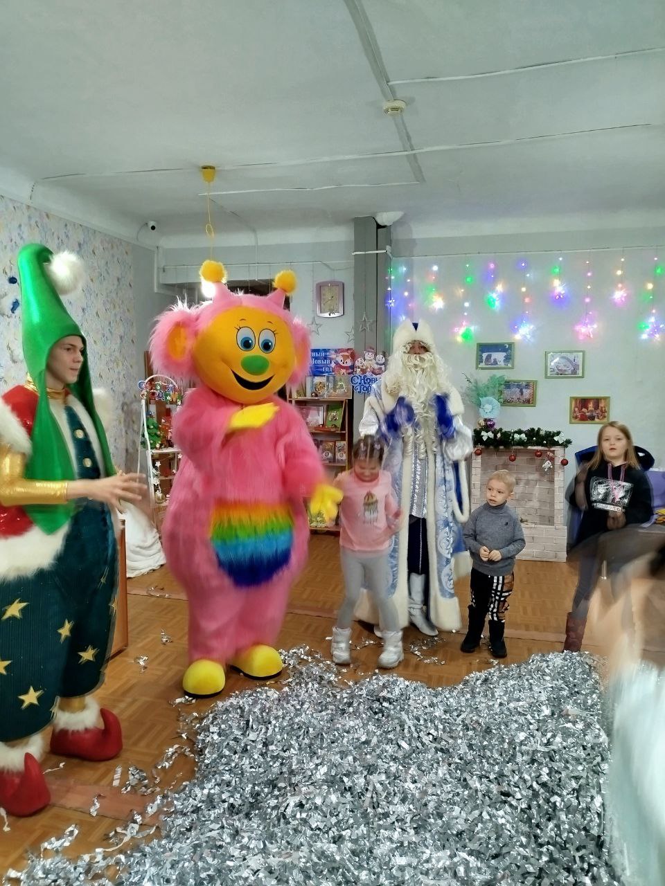Вместе со Снегурочкой и её друзьями дети рисовали новогодние рисунки, играли в музыкальные игры, разгадывали загадки и читали стихи.