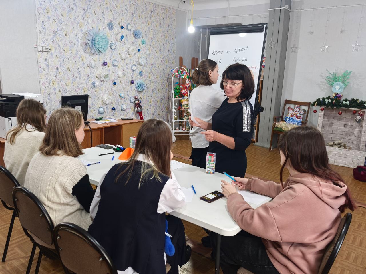 14 января в детской библиотеке собрались активисты школы № 44, чтобы вместе поработать над логотипом для нового детского культурно-просветительского центра «ПРОСТО». Этот центр планируется открыть на базе детской библиотеки, и ребята решили внести свой вклад в создание его фирменного стиля.