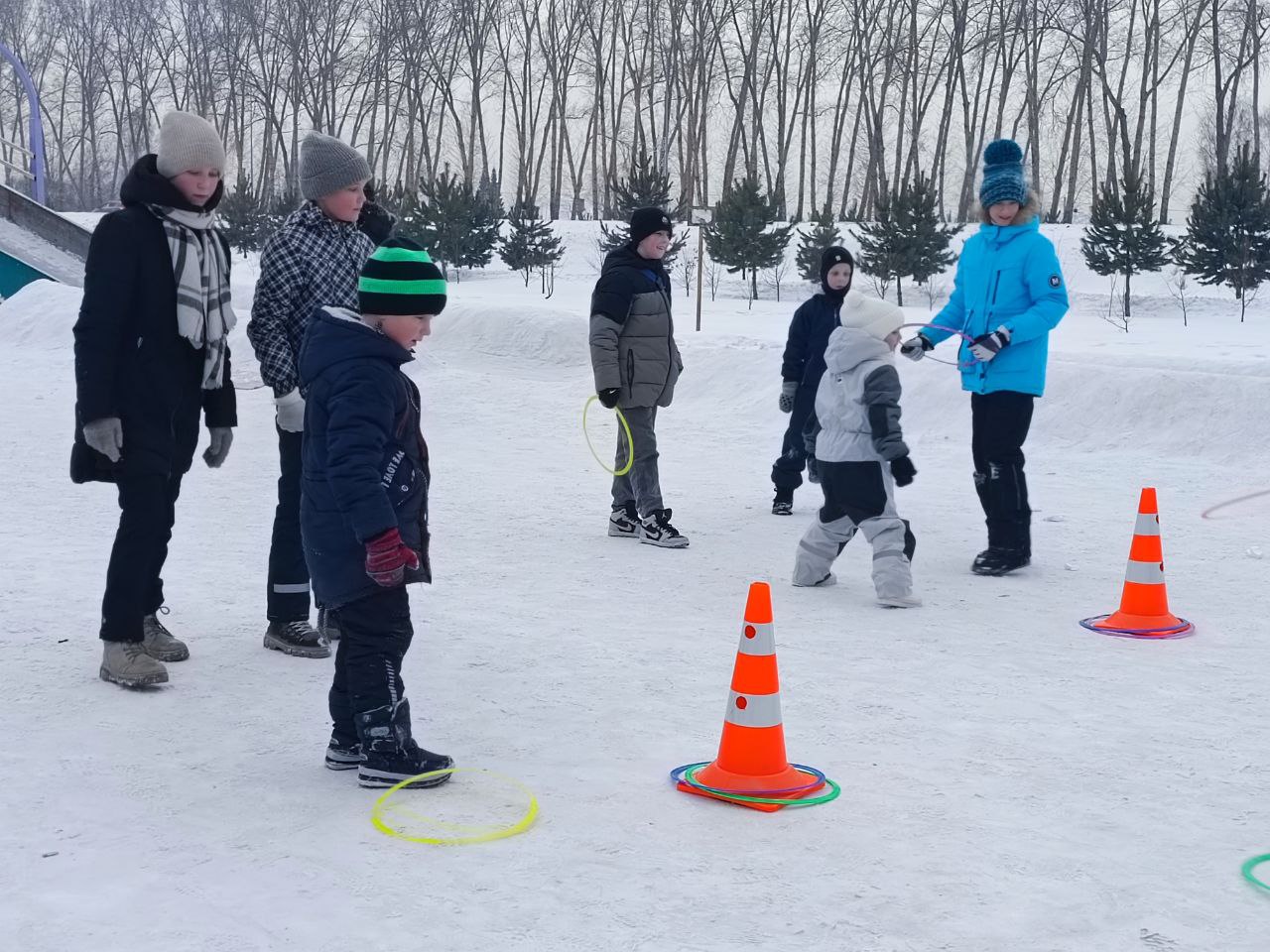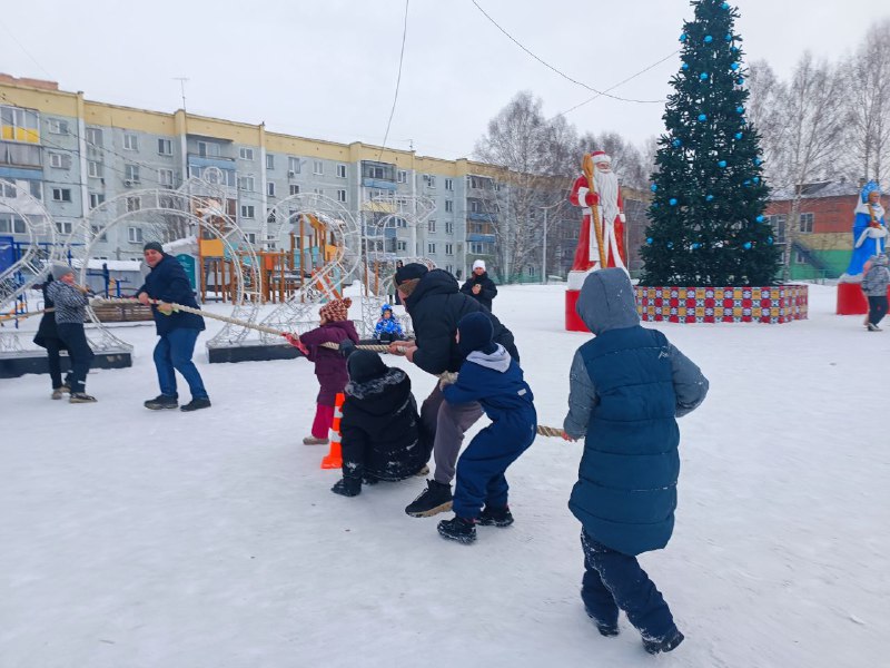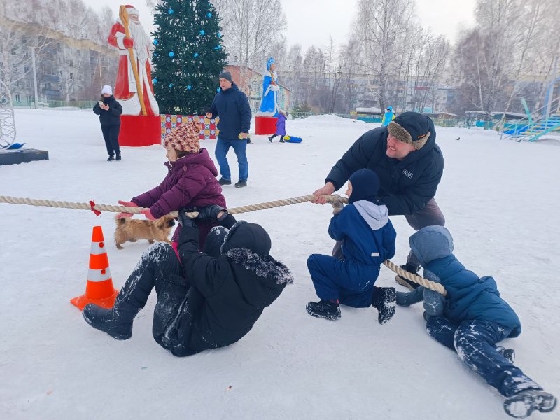 Дети участвовали в активных играх и состязаниях: проходили снежную трассу, соревновались в меткости, преодолевали полосу препятствий, ходили по ледяной тропинке, а папам представилась возможность поддержать малышей в традиционном конкурсе «Перетягивание каната».