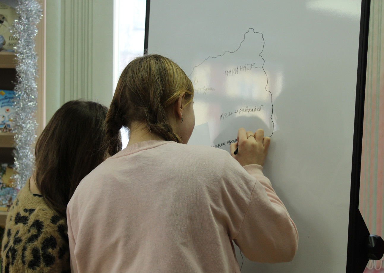 Участники погрузились в богатую историю региона, узнав, как город Кемерово назывался ранее. Участники мероприятия посмотрели авторский фильм о главных достопримечательностях Кузбасса, таких как Азасская пещера, Поднебесные Зубья, город Мариинск, Томская Писаница, скульптура «Золотая Шория», Кузнецкая крепость и монумент «Память шахтерам Кузбасса». Затем ребята нарисовали карту Кемеровской области и отметили на ней города, рассказали в каких городах побывали и поделились впечатлениями о достопримечательностях.