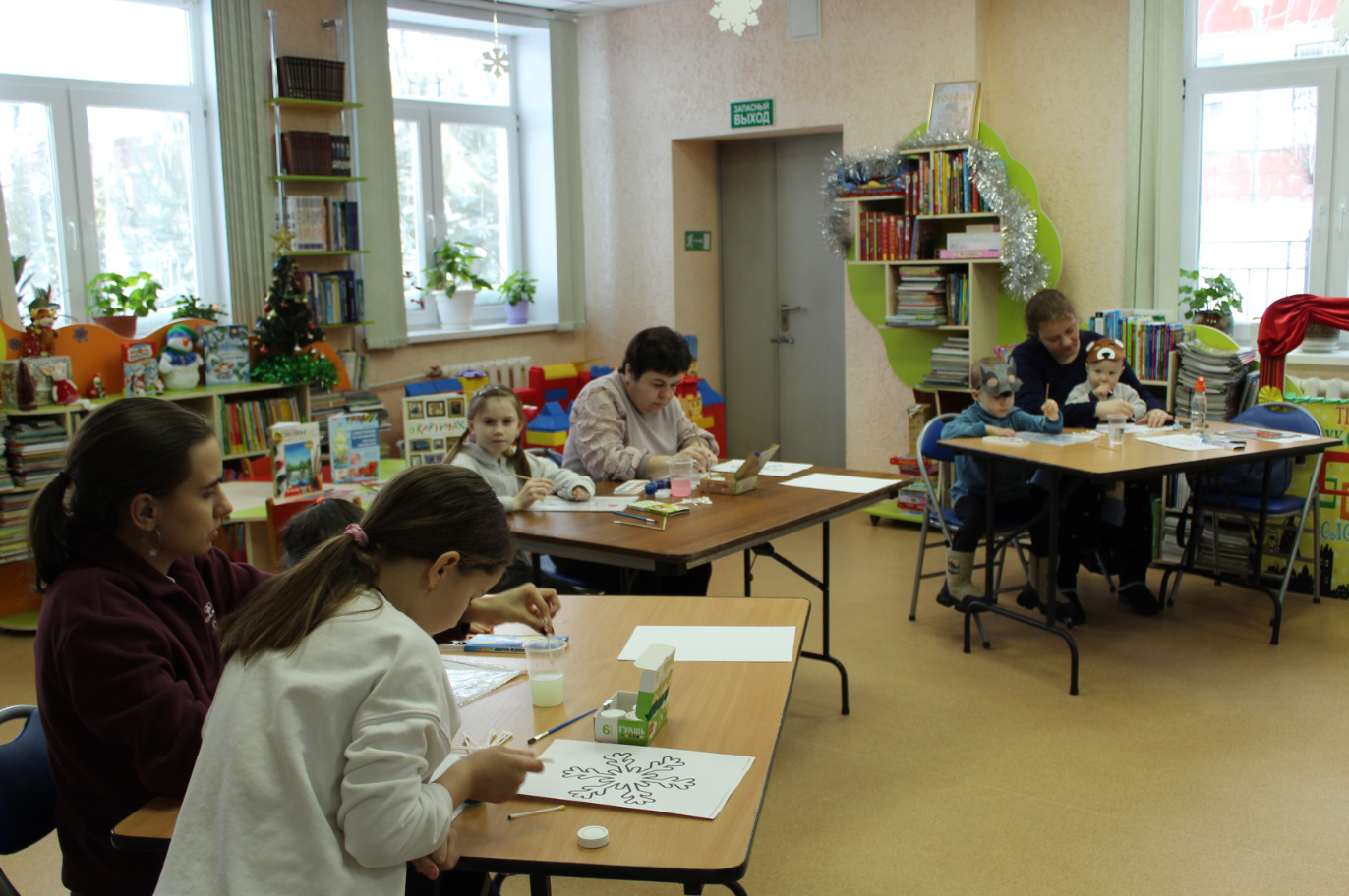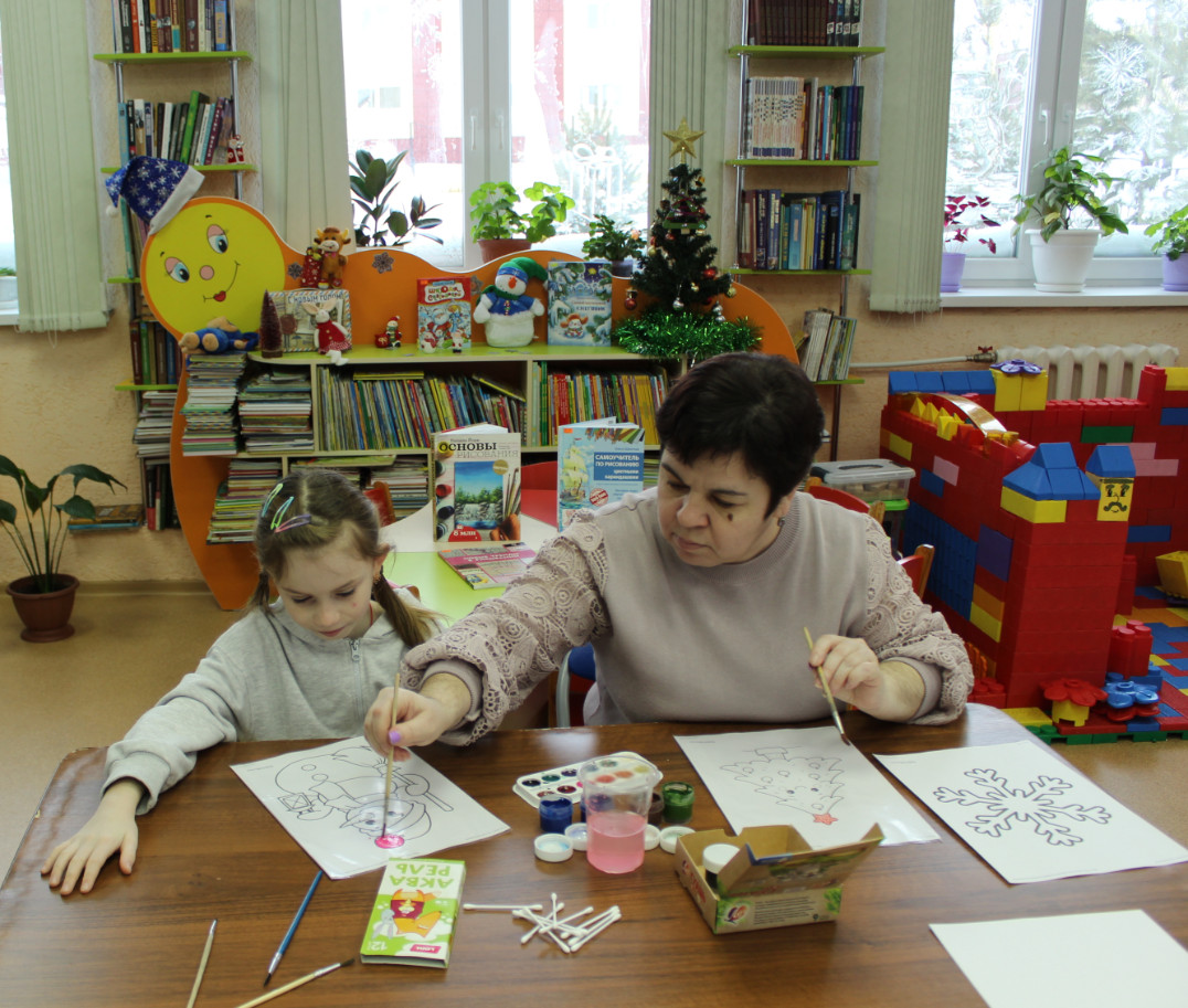 10 января пространство модельной библиотеки преобразилось в настоящую творческую мастерскую. Здесь собрались дети вместе со своими мамами, чтобы окунуться в мир творчества и создать рисунки в необычной технике - монотипии. Это техника печати, позволяющая создавать неповторимый рисунок путем нанесения краски на поверхность и последующего переноса её на бумагу.