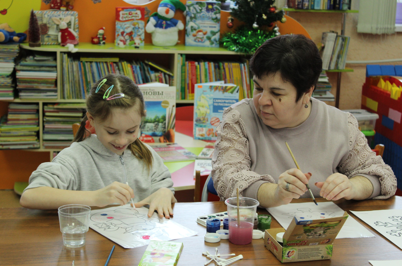 Участники мероприятия вооружились всеми необходимыми материалами: яркой гуашью, красивыми новогодними картинками и мультифорой. Каждый мог проявить свою фантазию и креативность, создавая образы любимых символов Нового года: пушистых зелёных ёлок, забавных снеговиков и изящных снежинок. Атмосфера была наполнена вдохновением и радостью творчества.