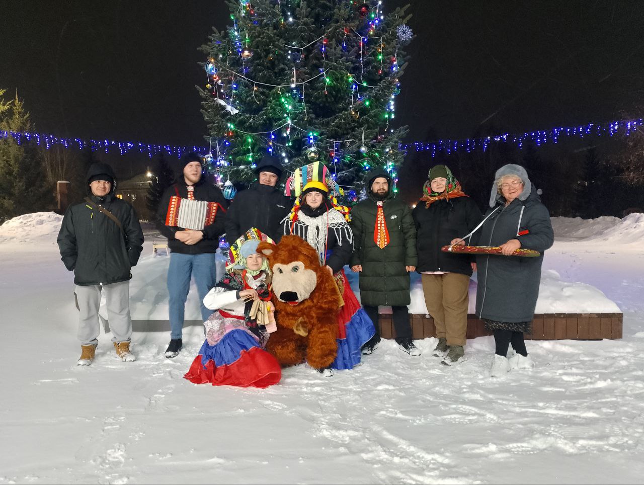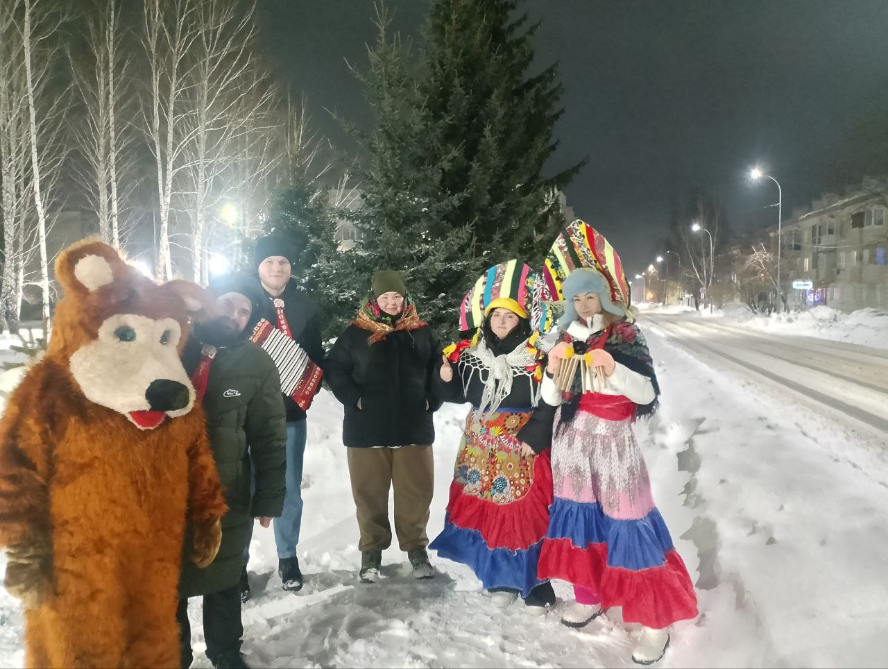 Самые увлечённые участники вдохновившись историей празднования вышли на городские улицы, продолжив весёлые народные гуляния исполнением праздничных песен-колядок.