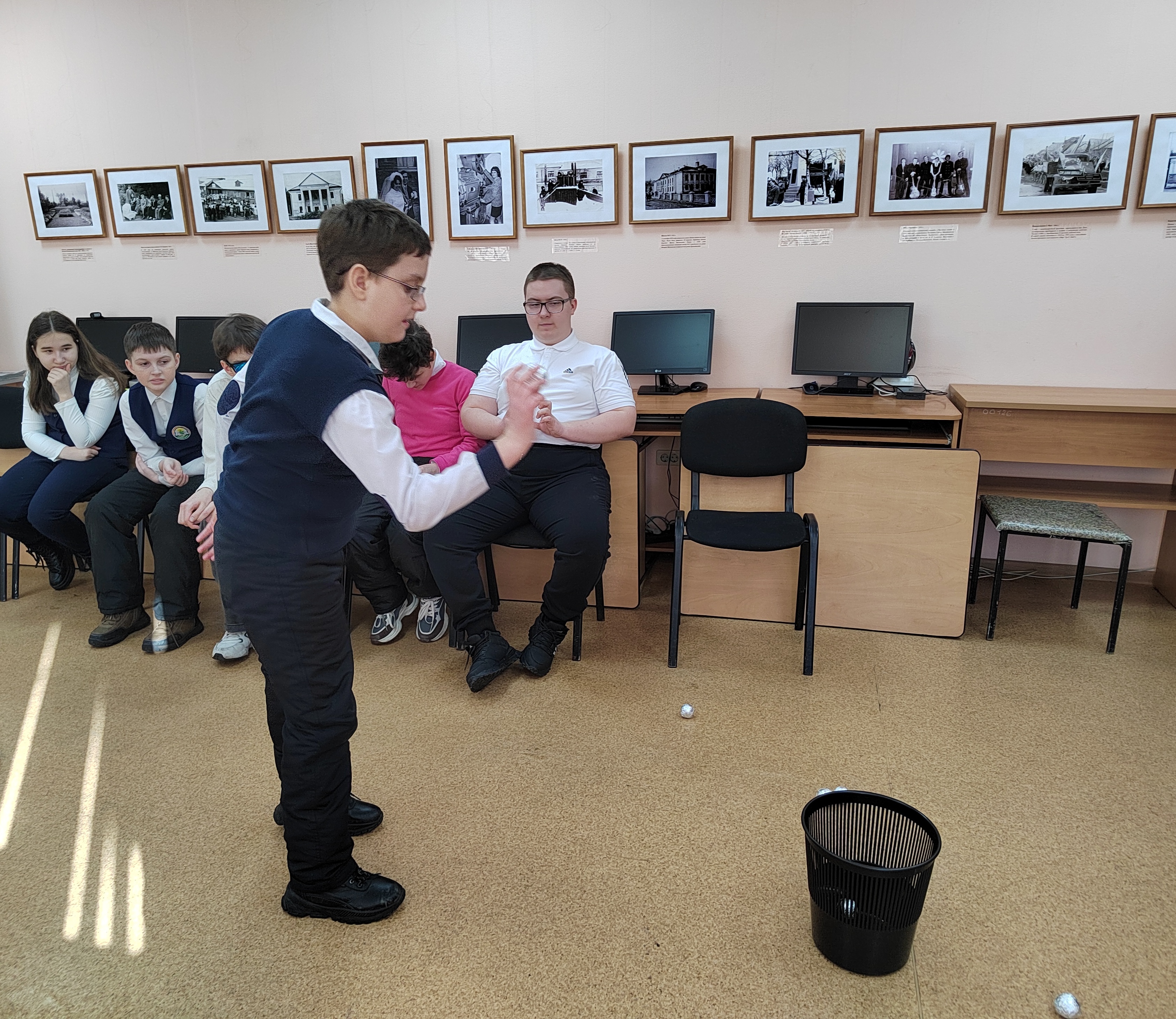 После теоретической части гостей ждала череда весёлых состязаний под задорную музыку. Конкурс «Украденные блины» проверил скорость участников — нужно было как можно быстрее схватить блин. В состязании «Прыжки с вареником» ребятам предстояло проявить ловкость и выносливость: преодолевая препятствия, они собирали блины и доставляли их в командный «склад». Атмосфера зимней сказки возникла в конкурсе «Бросание снежков» — школьники соревновались в меткости, стараясь забросить как можно больше снежков в корзину.