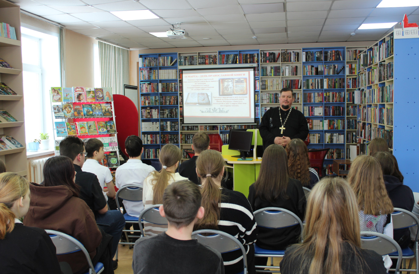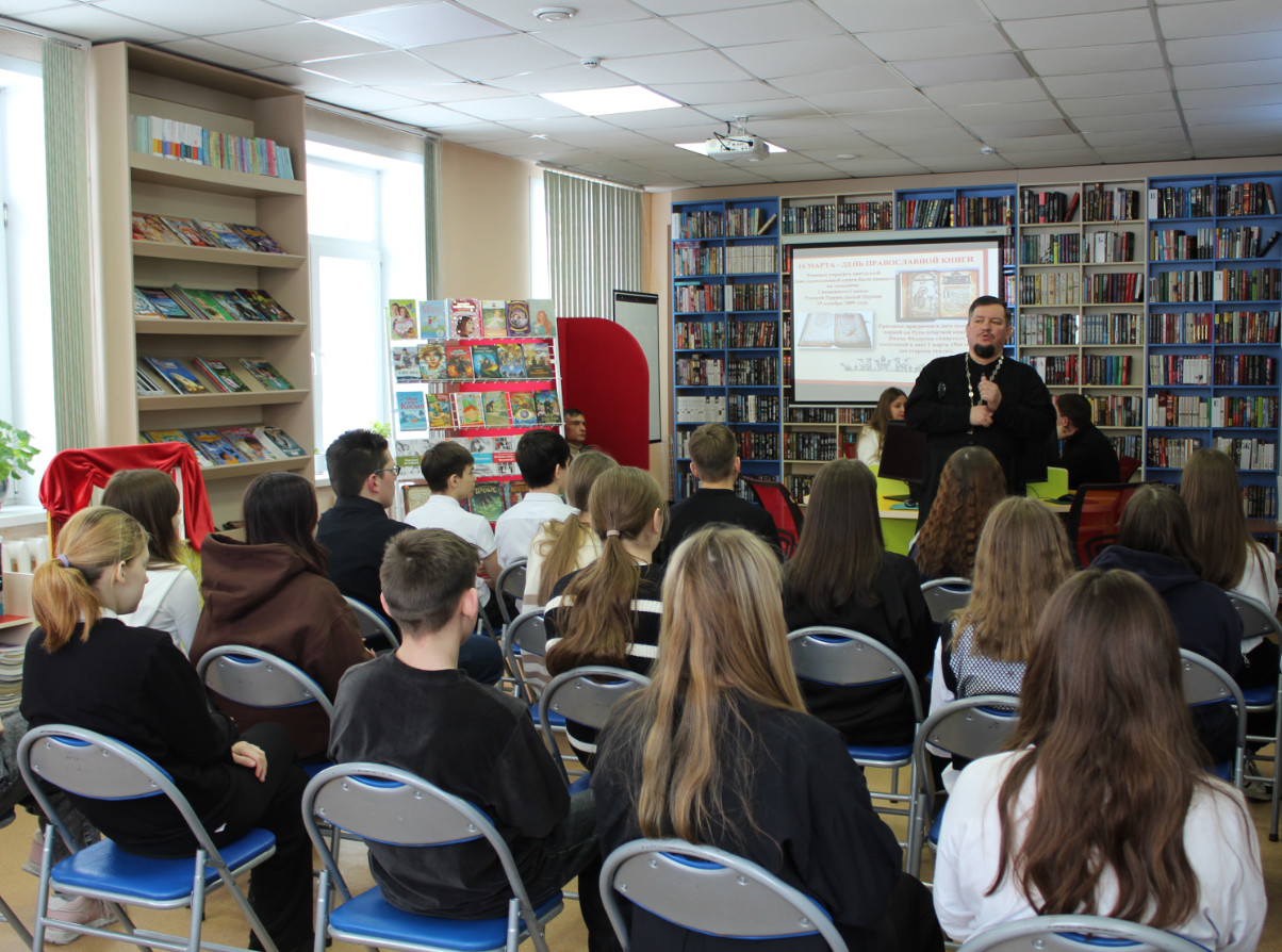 Накануне Дня православной книги в модельной библиотеке состоялась познавательная встреча с священнослужителем «Духовной книги благодать». Гостем мероприятия стал настоятель храма Святой Елизаветы г. Ленинска-Кузнецкого священнослужитель отец Виталий.