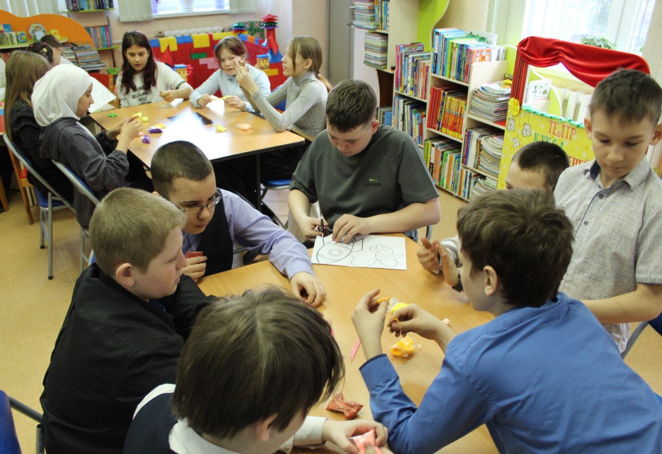 Библиотекарь рассказала о первом космонавте совершившим полет в космос. Подробно остановилась о космонавтах, Кемеровской области: легендарном Алексее Леонове и Викторе Гребенкине. В интеллектуальной викторине «Звёздные открытия», ребята разгадывали загадки, расставляли по порядку планеты солнечной системы, а в творческом задании «Моя космическая планета» каждый смог проявить фантазию и создать свою вселенную.