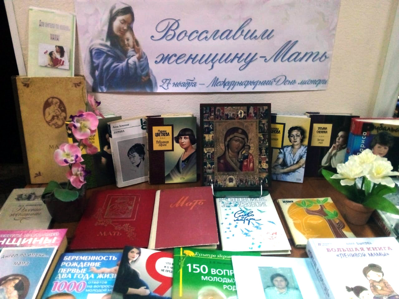 Этому замечательному празднику в центральной городской библиотеке посвящена книжная выставка «Восславим женщину МАТЬ!», которая оформлена накануне праздника 26 ноября.