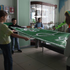 Забрасывали мячи необычным способом на импровизированном футбольном поле, где работали не ноги, а руки всей команды.
